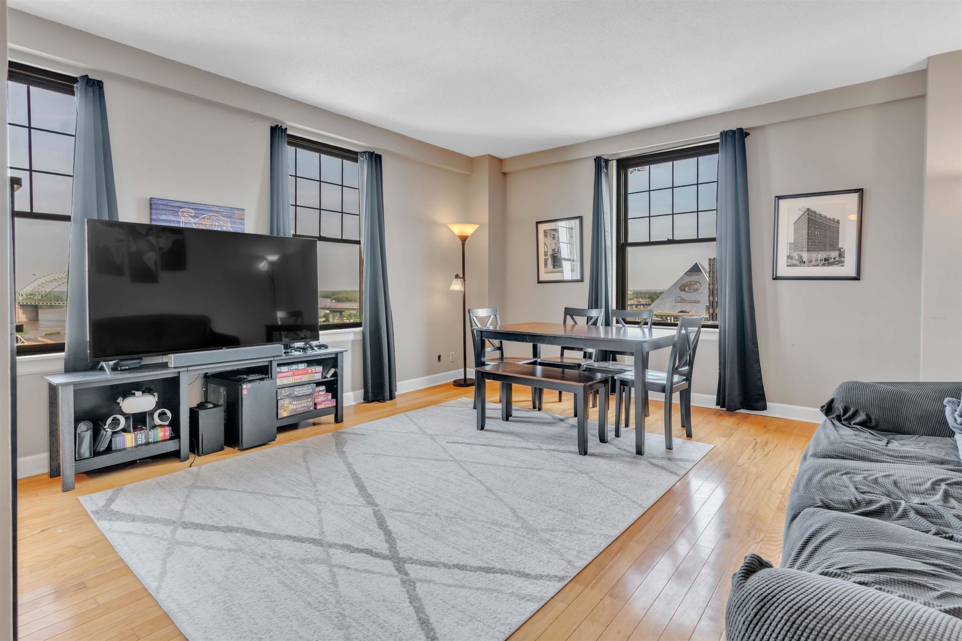 2 bedroom, 2 bath corner unit on the 12th floor of the historic Claridge House Condominiums with sunset views of the Mississippi River. This unit offers great natural light, a spacious living area, and added privacy from its corner layout. Amenities include an indoor pool and hot tub, fitness center, rooftop patio, and rentable event lounge. Located in the heart of Memphis along the Main Street trolley line with easy access to restaurants and entertainment. Parking available in the adjacent garage. All appliances remain.
